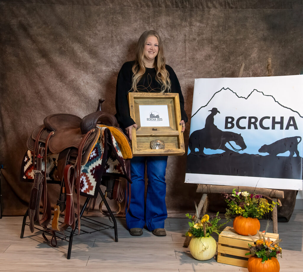 $1000 Progressive Rider was won by Robyn Dubord (l). Saddle sponsored by Quiring Trucking (l)